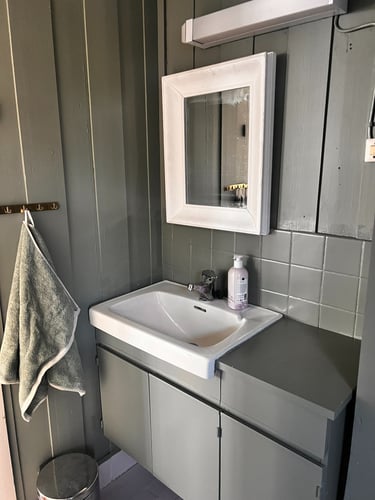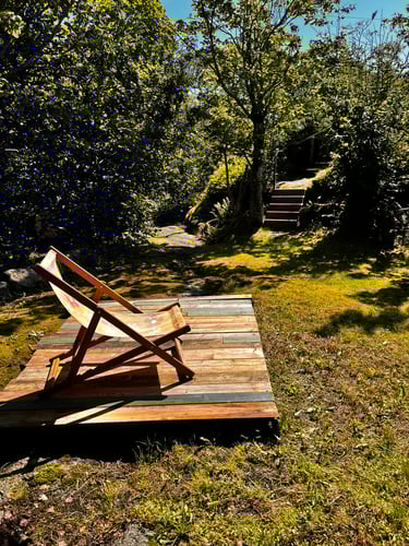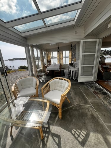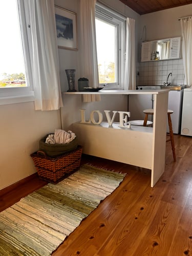 Hytta er gammel og sjarmerende. Den har ett anneks som fungerer som en egen enhet med kjøkken, soverom stue og egen terrasse. Gjesteboden har to sengeplasser, egen terrasse, og selvfølgelig sjøutsikt.